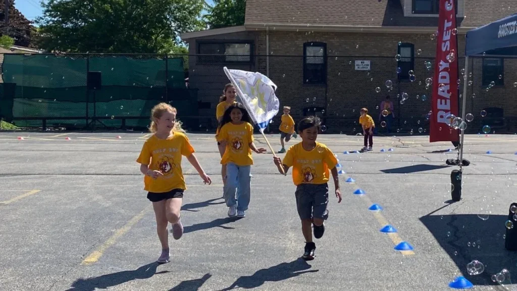 The Wolf Run, our run-a-thon fundraiser, is typically on a Friday in May. Kids collect pledges online and when Wolf Run Day comes, we all go out and run laps, dance and have blast, all while raising money for our school!